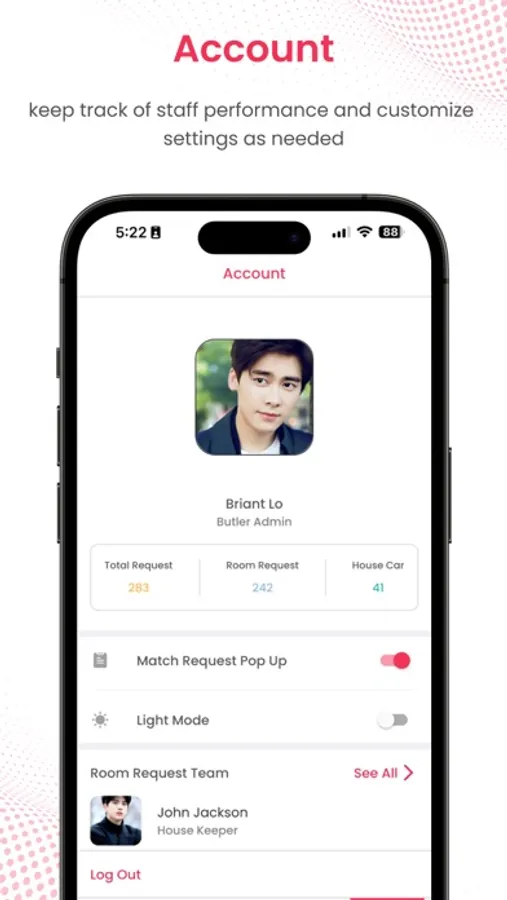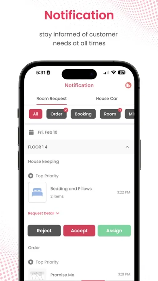 - Notification : stay informed of customer needs at all times.Account : keep track of staff performance and customize settings as needed.