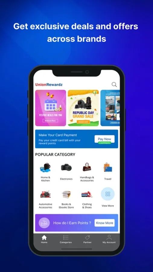 Union Rewardz is an exclusive loyalty program by Union Bank of India designed to provide a more rewarding banking experience to its valued customers. Now you can earn Union Reward Points every time you use your Union Debit or Credit Card for in-store or online shopping, dining, paying utility bills and more. Redeem your Union Reward on the Union Rewardz app for exciting rewards or use them at partner stores for discounts.