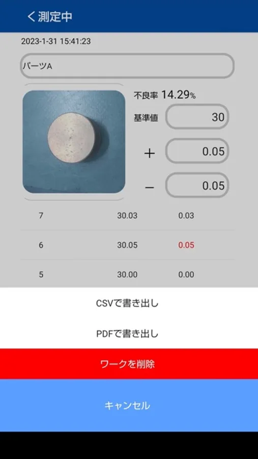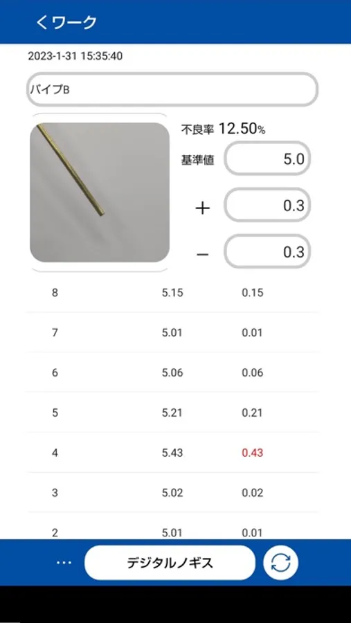 シンワ測定製のデジタルノギス データ通信機能付を使用して、測定、検査などの計測補助を行うアプリです。