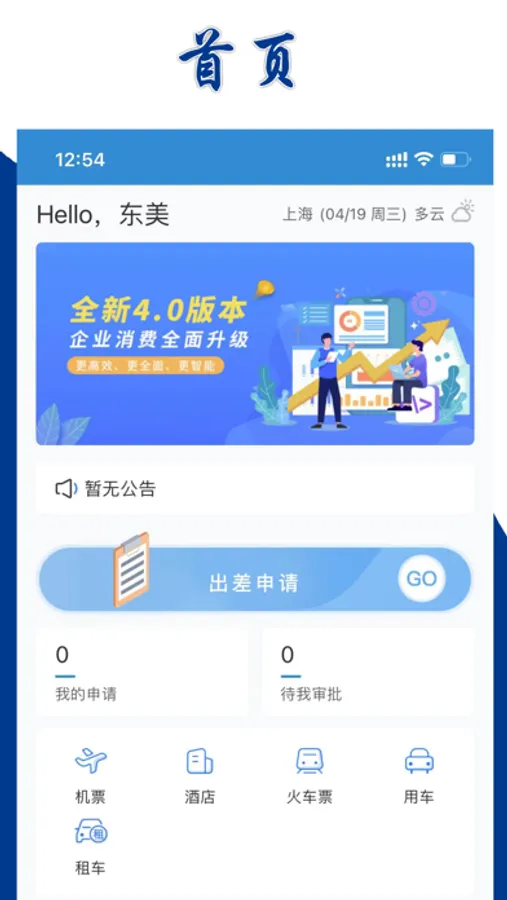 东美差旅是东美航旅为解决客户商务差旅定制的APP程序。