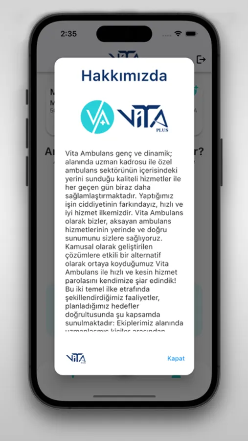 Vita Ambulans ile hızlı ve kesin hizmet parolasını kendimize şiar edindik! Bu iki temel ilke etrafında şekillendirdiğimiz faaliyetler, planladığımız hedefler doğrultusunda şu kapsamda sunulmaktadır: