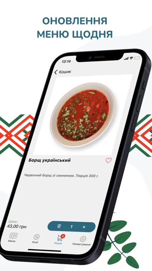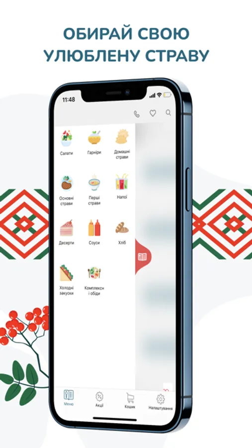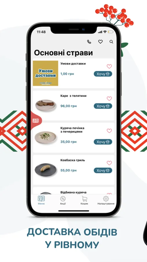 • самостійно замовити страви з нашого меню, яке щоденно оновлюється;
