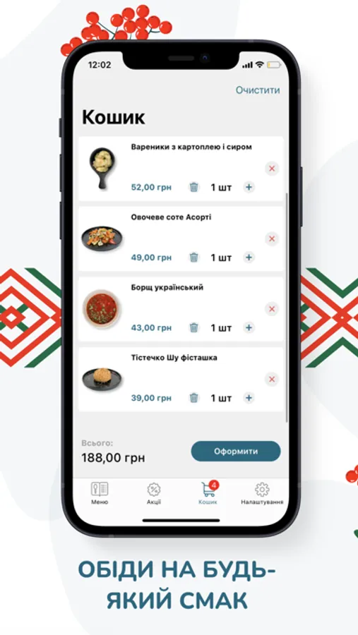 • обрати страви на вибір або ж замовити комплексний обід;