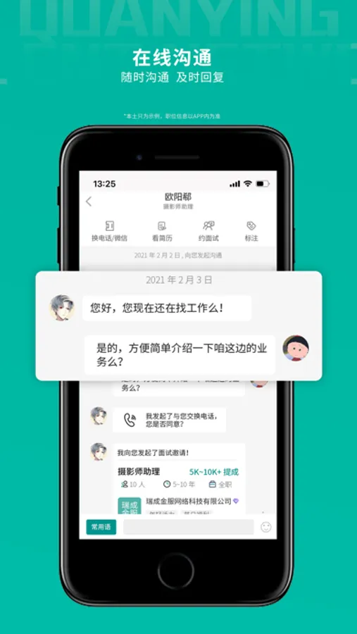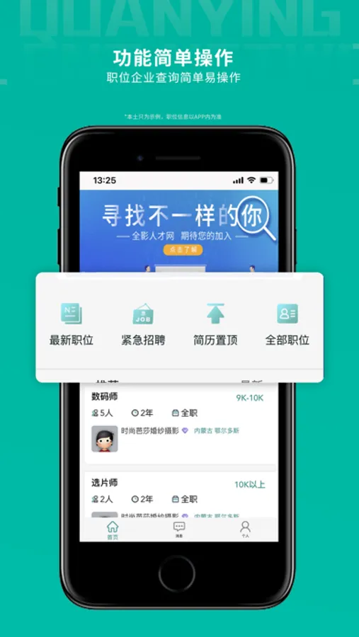 专注婚纱影楼行业招聘求职!多年来专注为影楼人才服务,求职者与招聘者精准匹配,随时随地,直接开聊。聊爽就约 ,快速入职。