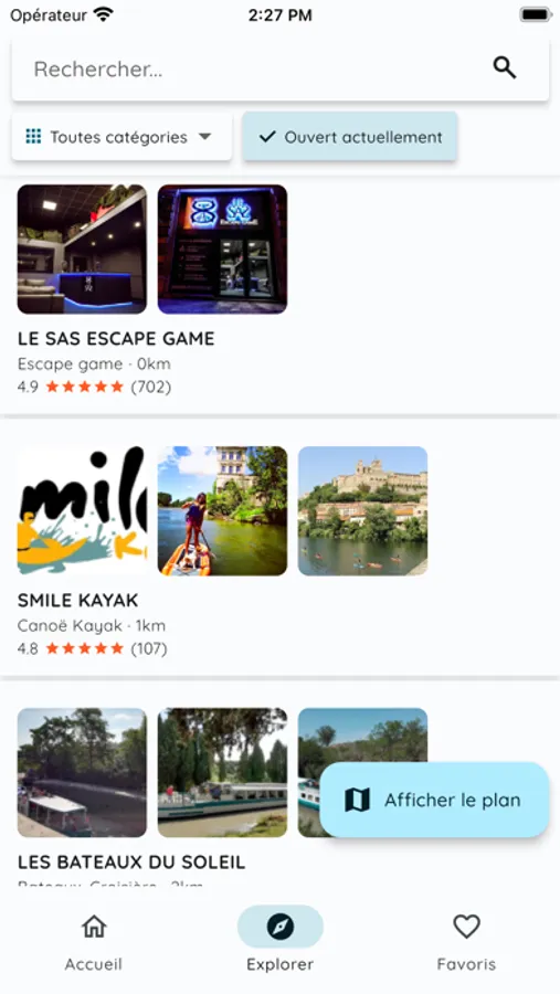 Rendez-vous sur la fiche d'une activité et obtenez toutes les informations essentielles : horaires, avis, tarifs, photos, adresse, contact, etc.