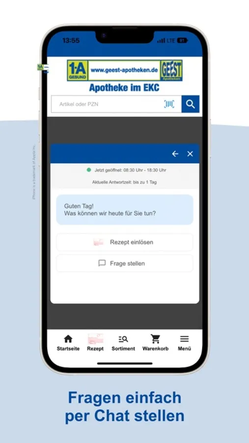 Wir bieten Ihnen über die App unser gesamtes Sortiment. Nicht sofort verfügbare Produkte bestellen wir für Sie und machen Sie in der Regel bis zum nächsten Werktag abholbereit. Gerne liefern wir Ihnen Ihre Bestellung per Botendienst direkt nach Hause.
