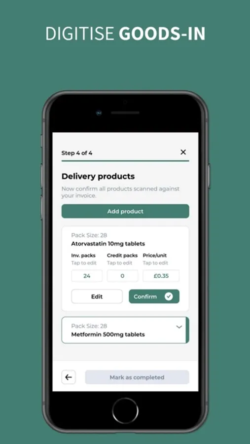 - Record delivered products, quantities and prices just by taking a photo of supplier paperwork.