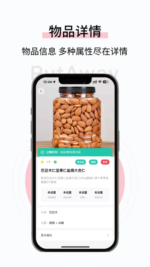它也是一个过期提醒软件,只要设置了过期时间、软件会自动提前预警即将过期或者已过期的物品、让他成为你的记事提醒和家庭收纳管家吧