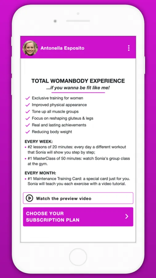 Sonia takes you into her fantastic world where she teaches you how to get into the best shape, while having fun and always with a smile on your face. A truly functional course entirely dedicated to women: cardio and toning exercises for the buttocks, arms, legs and abdominals, all with a natural load or with the addition of small weights and ankle weights.