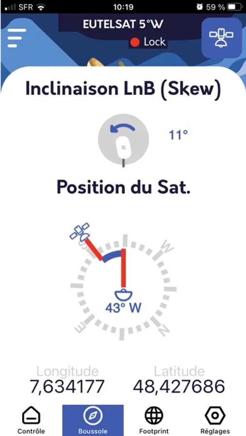 - Calcul automatique en temps réel de l'angle d'inclinaison du LnB (Skew) en