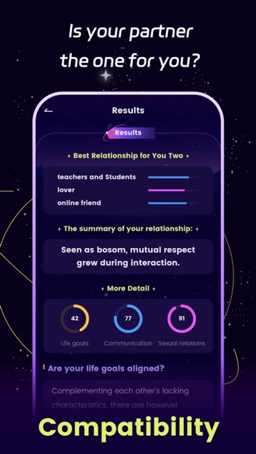 -If you have a crush on someone, you can use Pairing Analysis, in which we will analyse the differences and emotional states of you two from four dimensions—life goals, feelings and thoughts, communication, and sex and give corresponding suggestions and tips to help you safeguard the relationship.