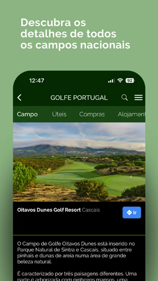 A App GOLFE PORTUGAL é um guia único de todos os campos de golfe do país, dirigida a todos os interessados no golfe nacional, quer se tratem de jogadores residentes no país ou daqueles que nos visitam anualmente para jogar naquele que é considerado um dos melhores destinos de golfe o mundo.