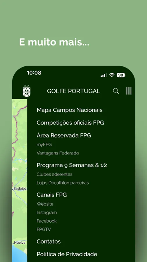 Desenvolvida pela Federação Portuguesa de Golfe (FPG) esta app distingue-se pela apresentação de todos os campos de golfe nacionais e das suas características únicas, localizando-os geograficamente de norte a sul do país, como também nas ilhas dos Açores e da Madeira. Algo sem paralelo em Portugal.