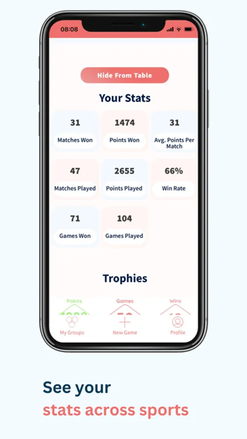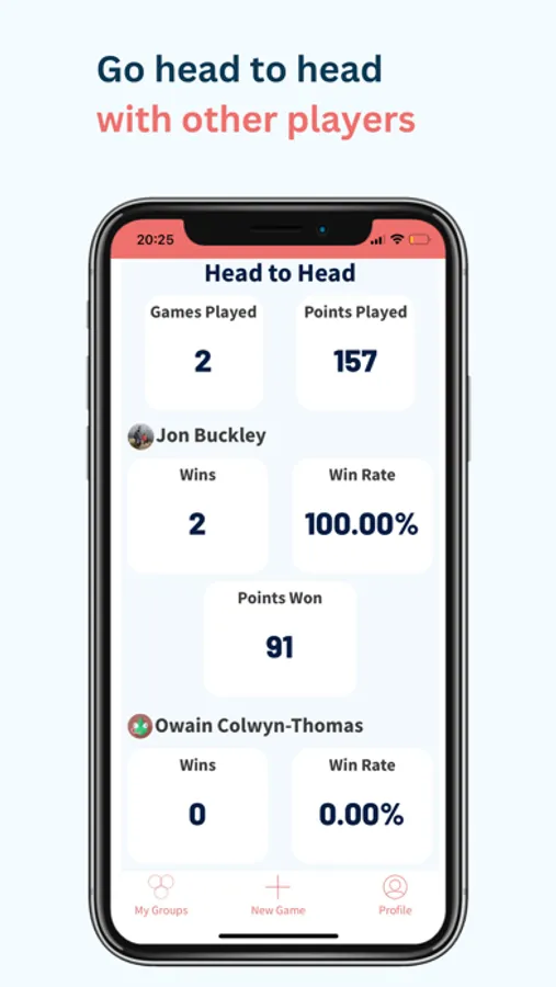 Stats - All your scores, goals and points are recorded for you to review any time while head to head stats let you compare yourself against any other player in the group.