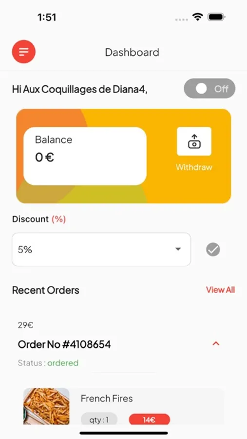 The ClickSo restaurant app enables the restaurants registered on ClickSo to manage the restaurant activities such as setting up dishes, managing orders that is accepting and process orders or cancelling orders. Dishes can easily be uploaded from your device camera or from your photo library and orders managed directly from the app.
