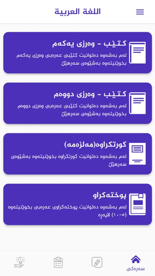 بەشی سەرەکی : لەم بەشەدا ئەو کتێب و کورتکراوەنە دانراون کە پەیوەست بە وانەی عەرەبی