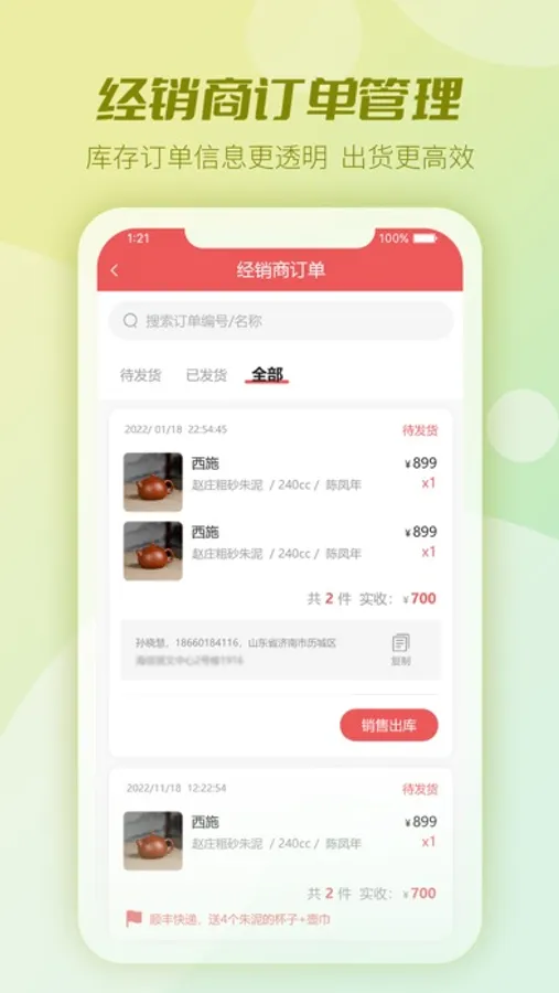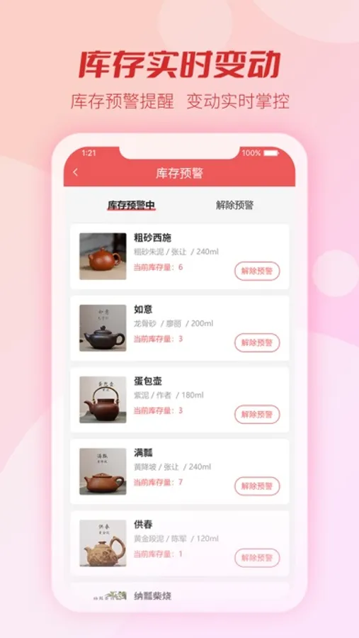 壶掌柜是专为茶器具行业的企业、店铺卖家开发的进销存管理工具。具有商品管理、库存管理、库存预警、线上订单管理、销售统计、库存统计、供应商管理、客户管理、员工管理等功能,智能化管理库存,快速出入库操作,多维度数据统计。