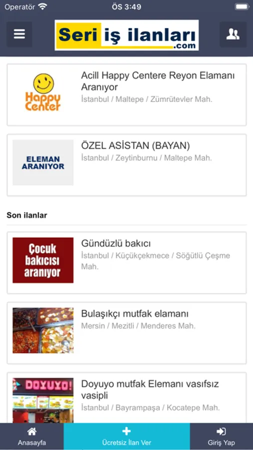 Ücretsiz seri iş ilanları sitesi ve uygulaması seriisilanlari.com ile aradığınız işi veya elemanı hemen bulun.