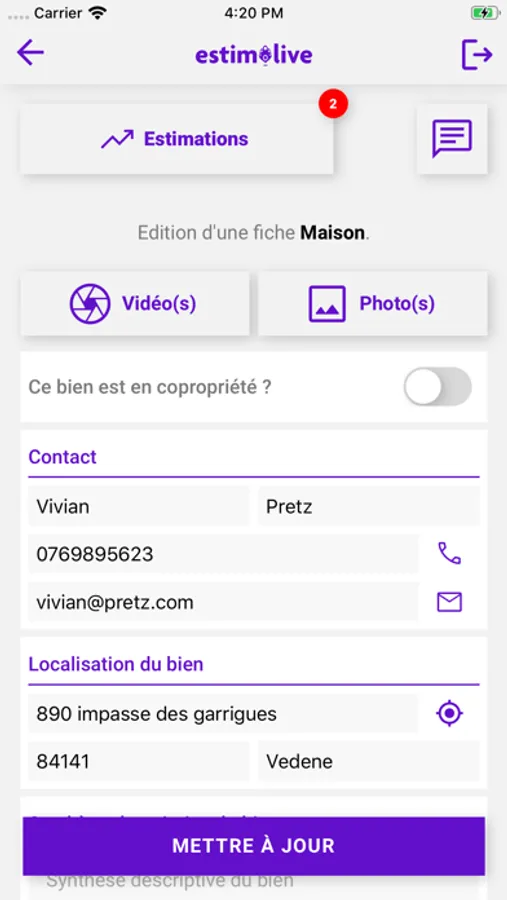 Application métier destinée aux professionnels de l'immobilier facilitant l'estimation et la mise en place d'une stratégie de vente.