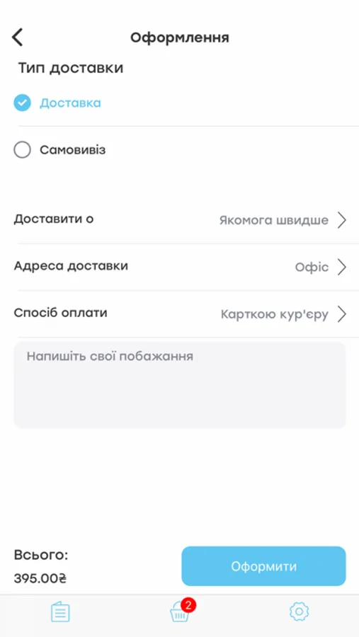 • встановити бажаний час доставки замовлення за вказаною адресою;