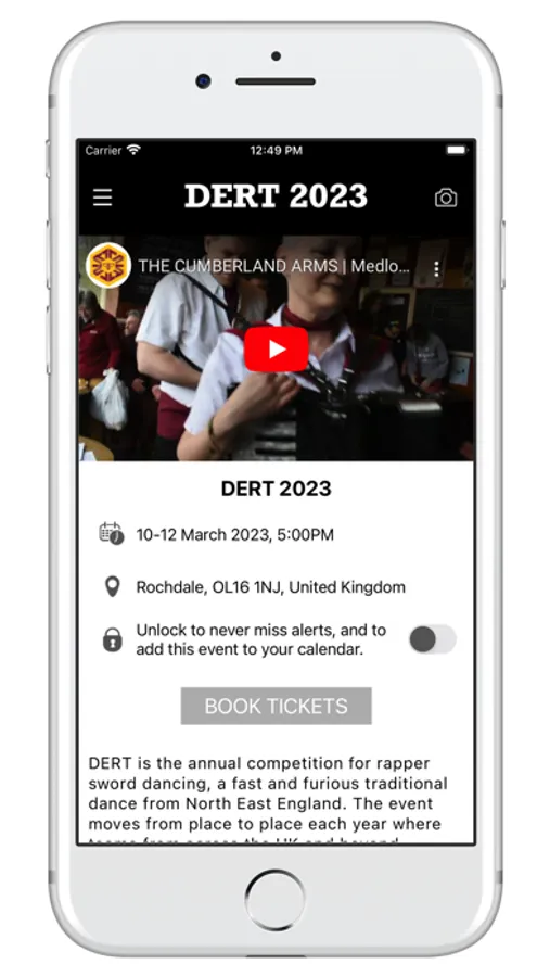 DERT is the annual competition for rapper sword dancing, a fast and furious traditional dance from North East England. The event moves from place to place each year where teams from across the UK and beyond compete in pubs in front of specialist judges. This year, DERT takes place in Rochdale Town Centre and is being organised by Steph & Tom.