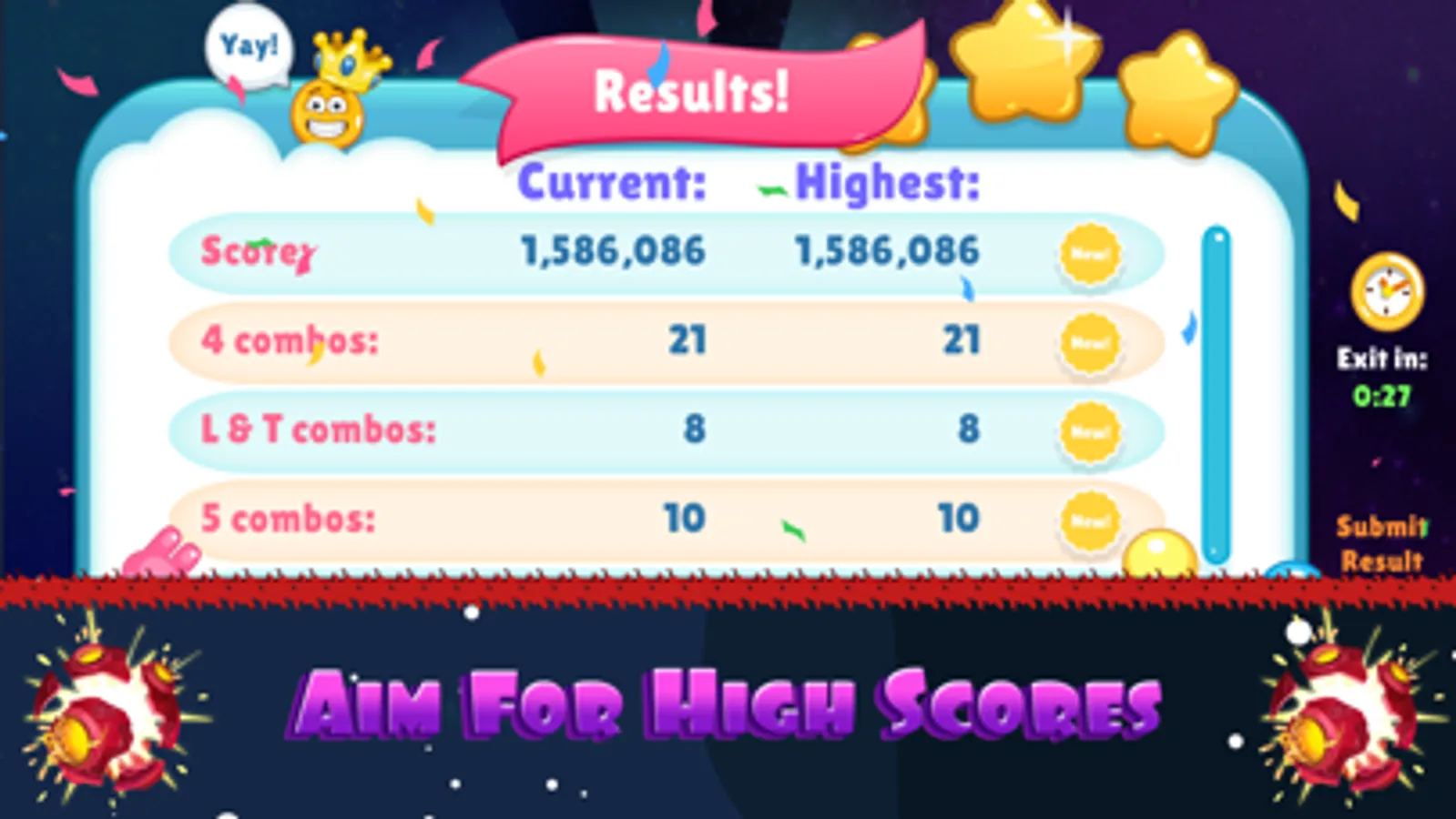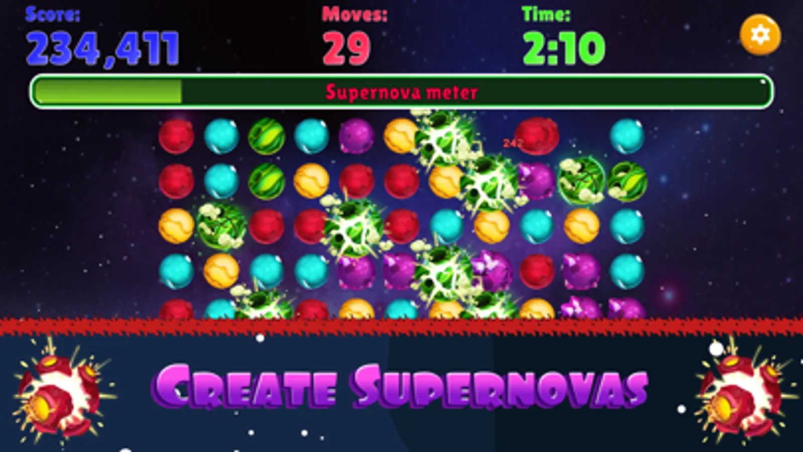 - Supernova’s reward the user with a big score and clear all grown planets!