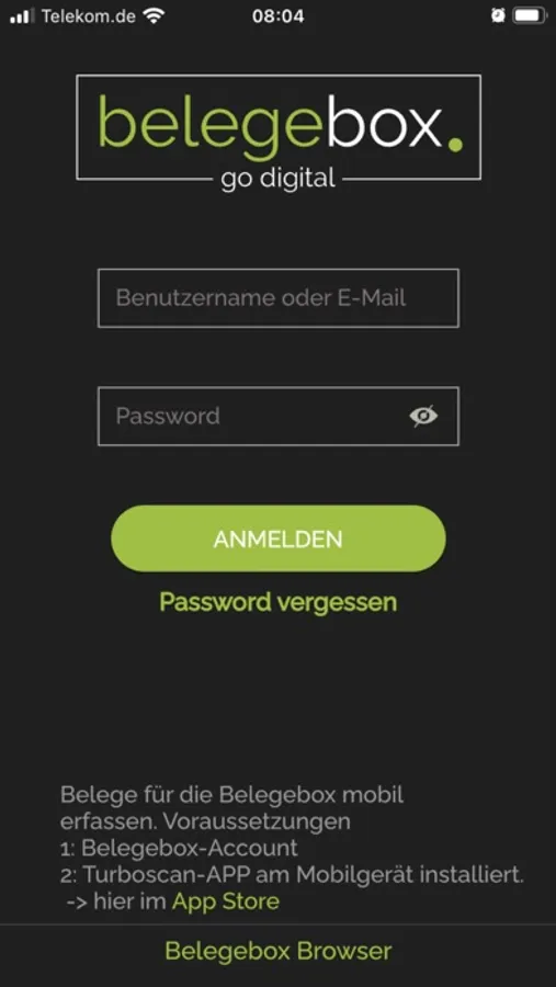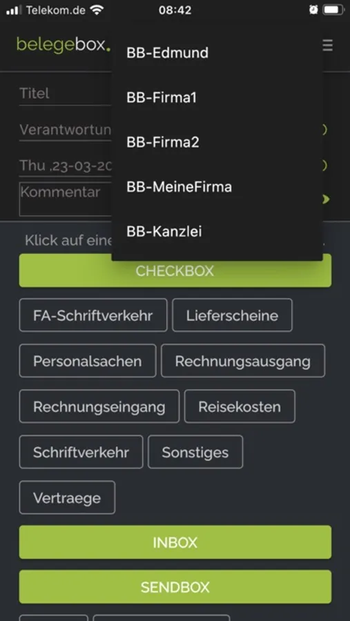 1.Belegebox account - www.belegebox.de (you can also use the test account)
