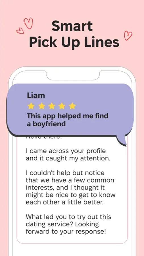 - Create your perfect pick up line in a single click!