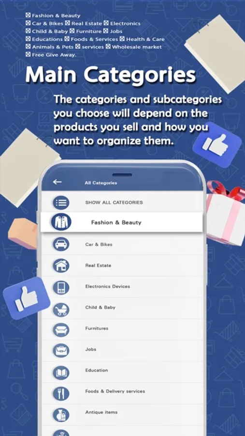 Open the Categories section Marketplace, Real Estate, Bike Motor, and Jobs