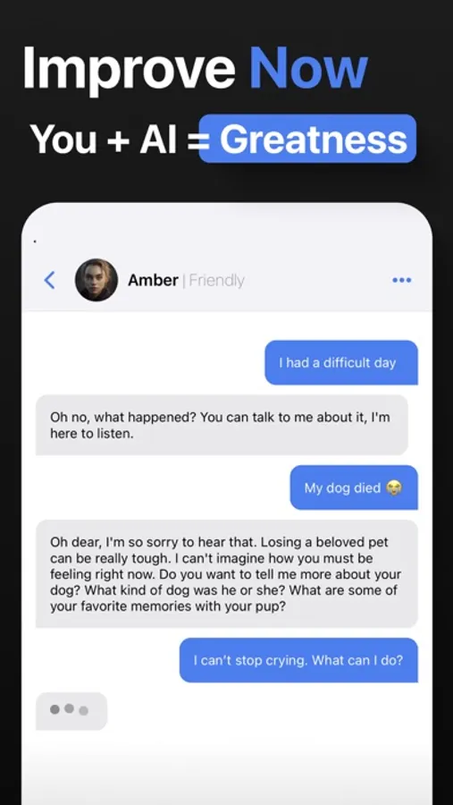 • Friendly & Engaging: Enjoy genuine, empathetic, and friendly interactions with Amber and other AI chatbots, designed to make you feel valued and understood.