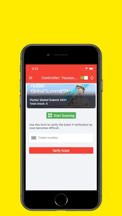 Version iOS de l'application Bembeya destinée aux organisateurs d'événements pour le contrôle et le suivi des tickets.