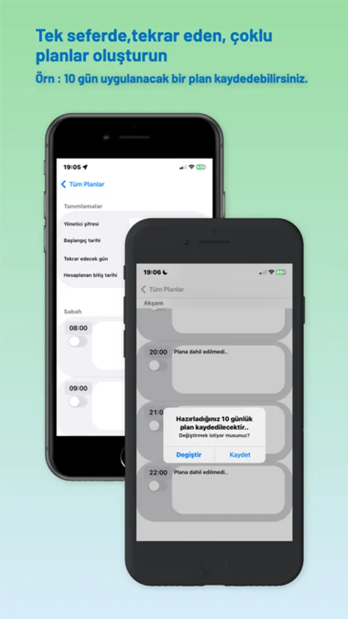 Son olarak evinizde yardımcınız ya da çocuklarınızla ilgillenen kişiler var ise saatlik takip edilmesi gereken rutin işlemler ile ilgili de çoklu planlar oluşturabilirsiniz.