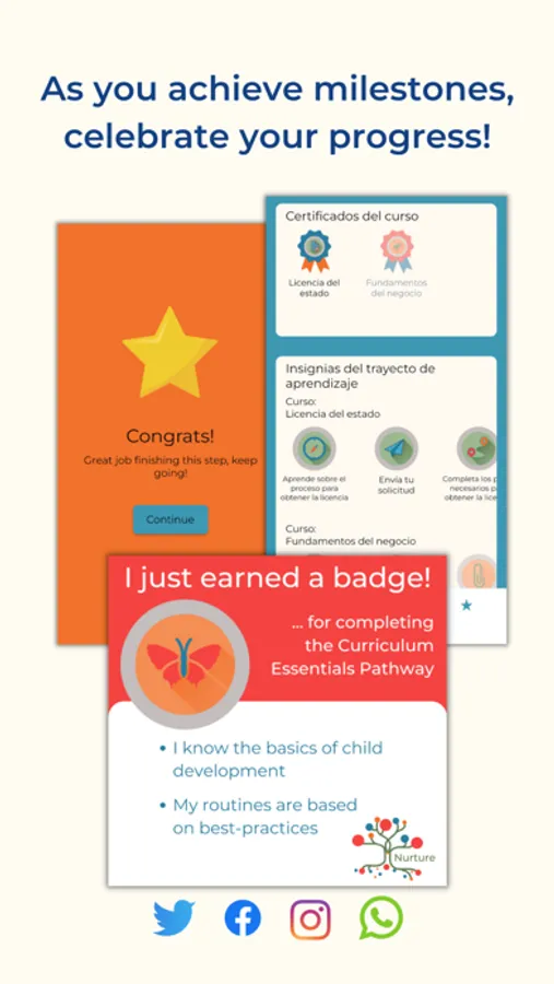 Nurture’s content is divided into five Courses—Explore, Plan, Start-Up, Take Root, and Grow—to deliver relevant information when you need it. In each Course, you follow Learning Pathways. As you take steps along a Pathway, you work toward achieving Milestones, which let you apply what you have learned to your business. In each step, you watch a short video or explore resource and reflect on how the information applies to your business. You earn a Badge for each Learning Pathway that you complete, and a Certificate when you have completed each Course.