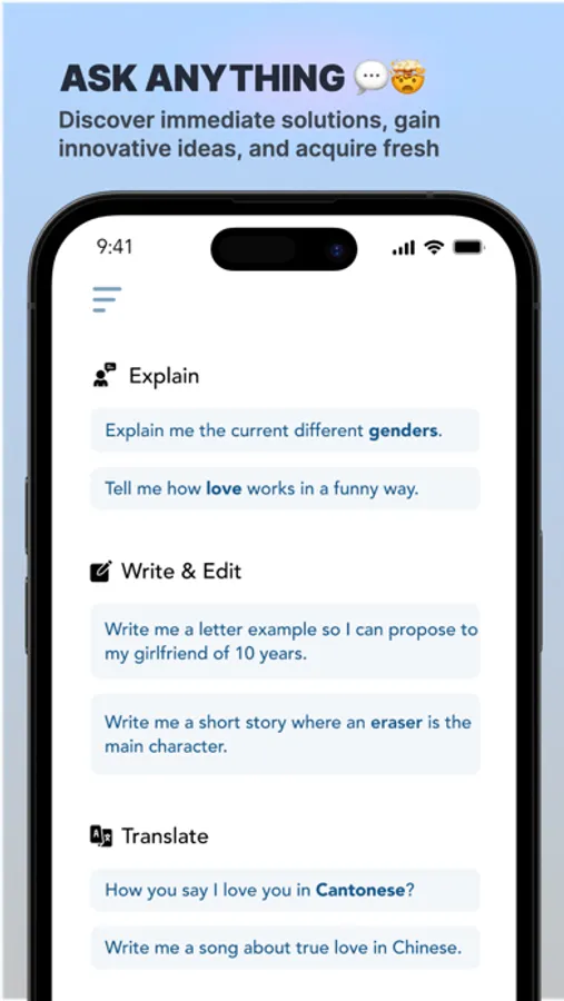 With the powerful AI capabilities of our Chatbot you can instantly receive answers to any question. Whether it's about historical events, scientific facts, obscure trivia, or pop culture references, Ask AI provides you with the knowledge you seek right at your fingertips.