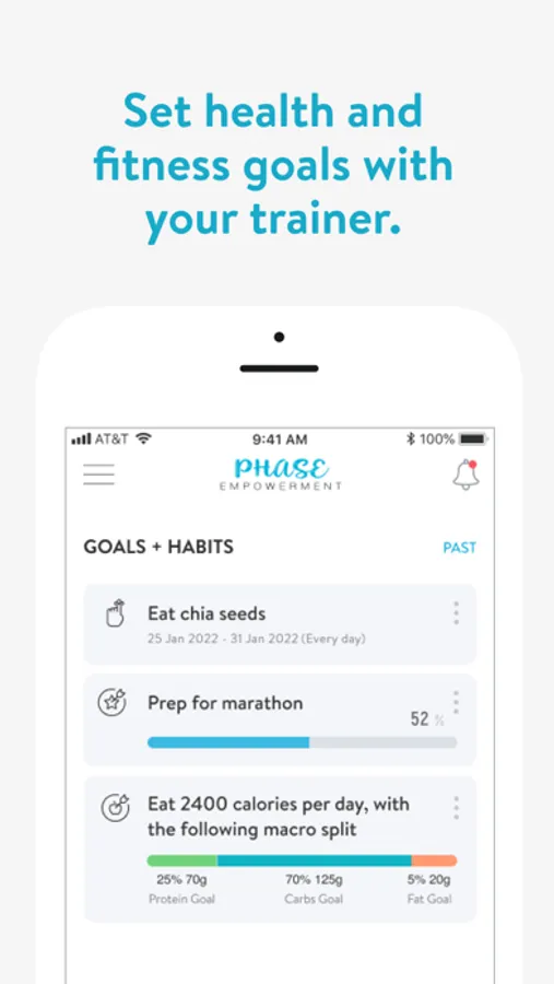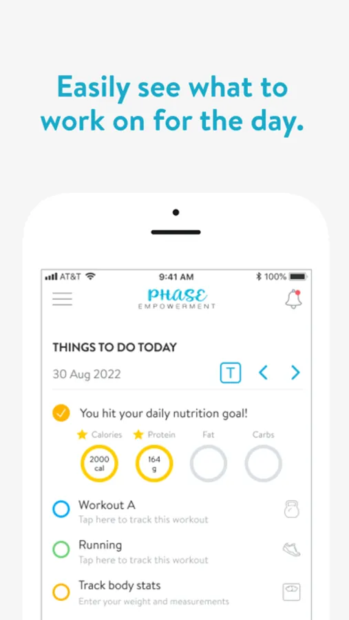 With the PHASEmpowerment App, you will have access to workout programs designed specifically to help you reach your fitness and health goals! You can follow & track your workouts, your nutrition, your lifestyle habits, measurements and results–all with the help of your coach.