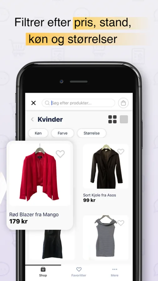 Vores app har også en avanceret søgefunktion, hvor du kan filtrere dine søgeresultater efter pris, stand, køn, størrelser, type og endda specifikke mærker. Det gør det nemt for dig at finde præcis det, du leder efter, og spare tid og penge.