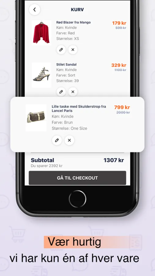 Brug vores favoritfunktion til at gemme alle de gode fund som du finder, så du nemt kan købe dem på én gang. Men husk at vær hurtig - vi har nemlig kun én af hver, og du skal jo ikke gå glip af muligheden for at gøre et godt køb.