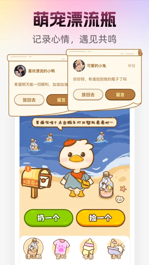 With the pet message in a bottle feature, your adorable pet can throw and pick up bottles, allowing you to express yourself freely and connect with like-minded individuals.