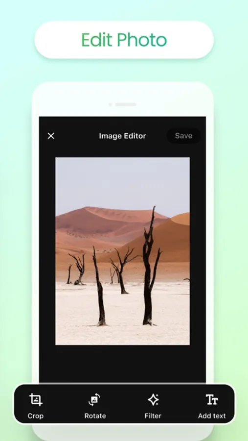 5: photo editing feature to help you, add filters, add text, cut, etc