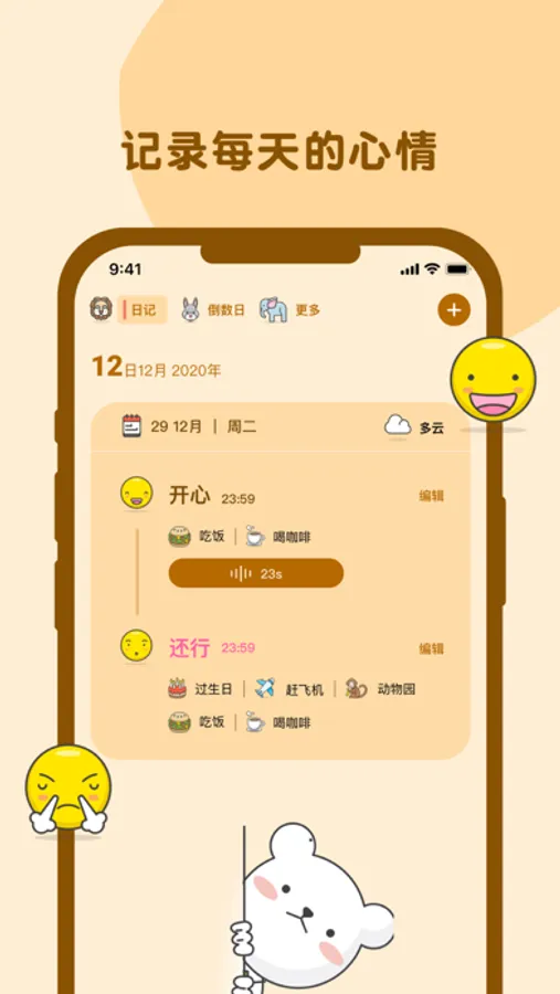 不用写字,通过表情、图标或语音来快速记录心情和故事,
