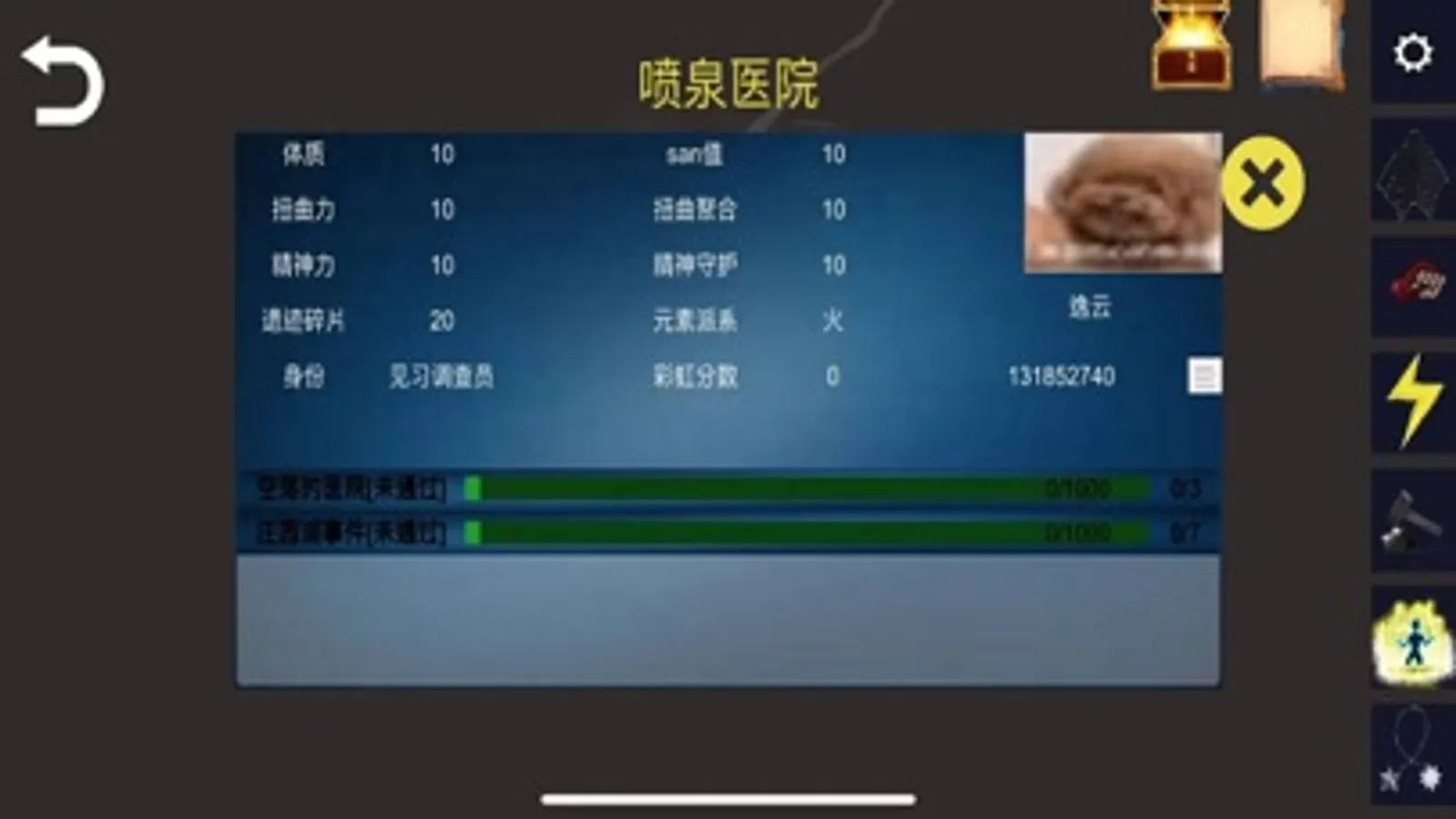 作为调查员,你将会降临各个平行宇宙,扮演各种各样的角色,以完成主线或者支线,并获得相应级别的封印物、原材料、碎片。