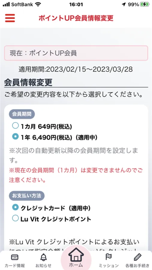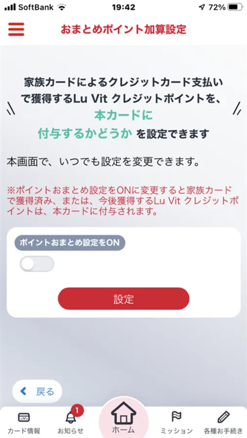 家族会員のLu Vit クレジットポイントを本人会員にまとめる設定ができます。