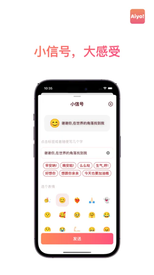 通过简单的表情和文字表达关心和想念,不用担心不知道说什么了,也不用担心每天想说什么却无话可说,轻轻点击即可发送给 ta!