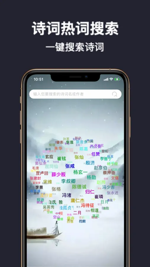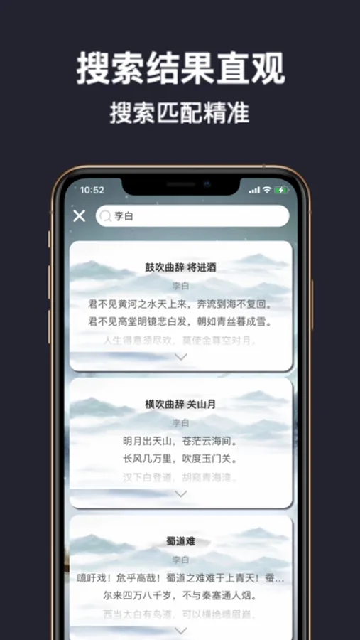 【2】一键搜索,输入关键词(诗词名,作者名或者名句关键字)一键搜索
