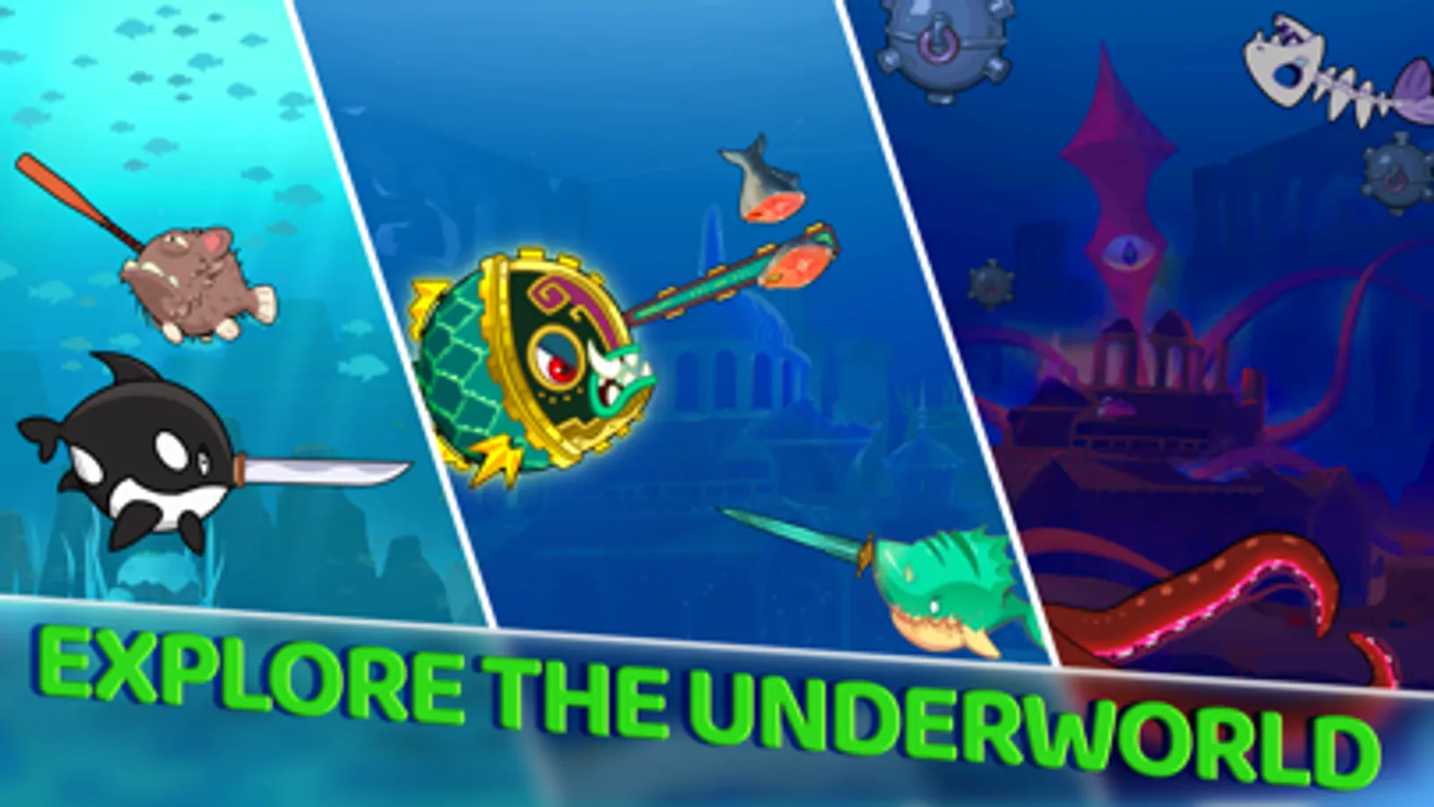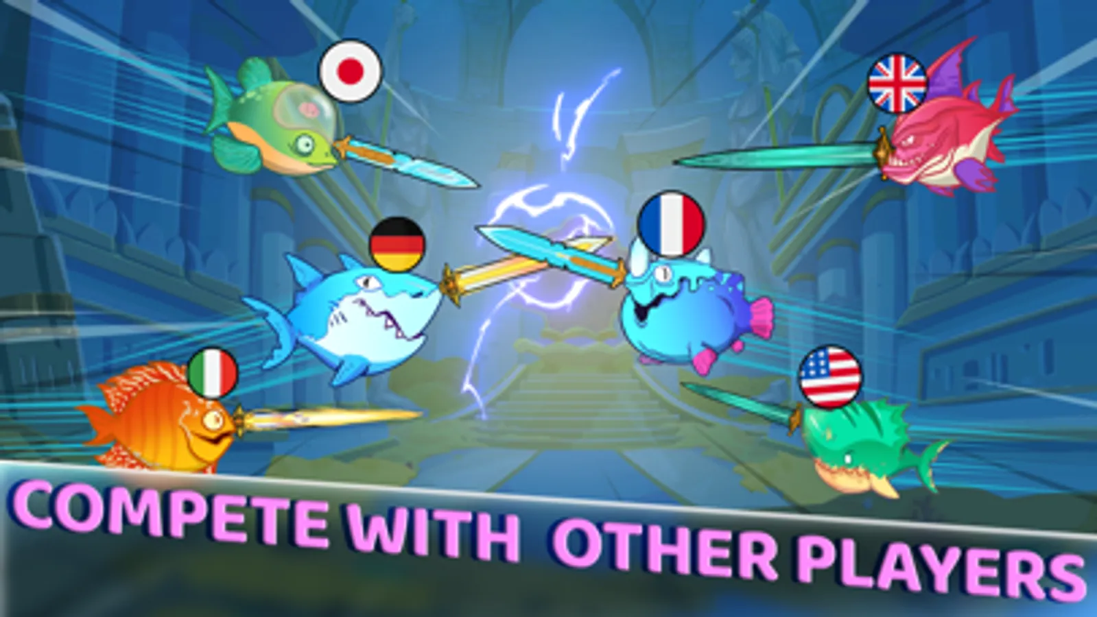 - Many different kinds of fish and weapon to help your fish move faster, rush faster and gain shields