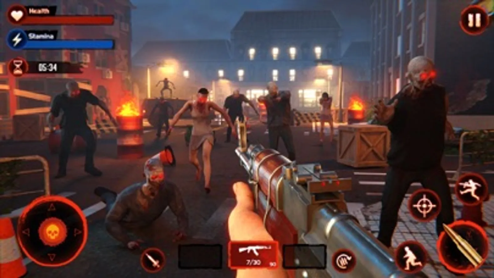 This zombie game is full of fun and action packed with multiple thrilling and stunning missions. Keep your defence up, your finger on the trigger and shoot zombies. You have to attack enemies before the zombie comes to you. As a pro shooter, you should save yourself from the zombie with the help of gun. Don’t hesitate to pull the trigger and hunt down the targets. Each day can be your last day, so you must use all of your shooting skills in order to alive and survive the end of the zombie war in this game. The virus spread out causing zombie outbreaks and humans are in danger, so it's your duty to shoot them to save yourself and other human lives. So be ready yourself to take part in this action game and fight as a frontline fighter. You will enjoy multiple surviving and killing zombie missions with the adventurous tasks in this game. Plan your war strategy and use a different variety of powerful guns and weapons. The whole city is full of zombies and human lives are in danger, so you have to reach different places and kill them.