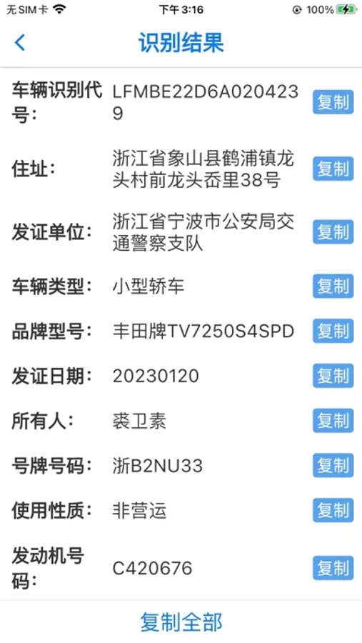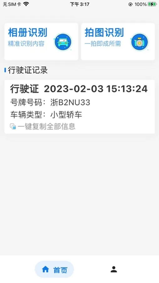 一款针对汽车或者二手车交易,进行发票开写过程中文字输错,车架号输错,地址输错痛点,进行拍照或者相册直接识别行驶证内容,一键复制黏贴,立马开票无误