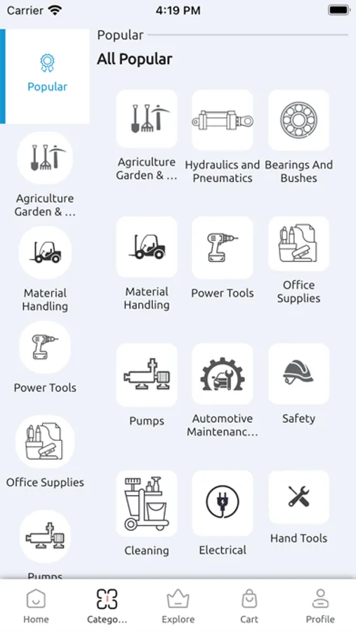 - Power Tools: Drilling Machine, Saws, Pressure Washer, Angle Grinder