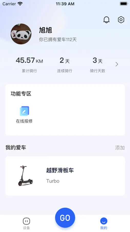 5、其他功能:在线保修、骑行数据等