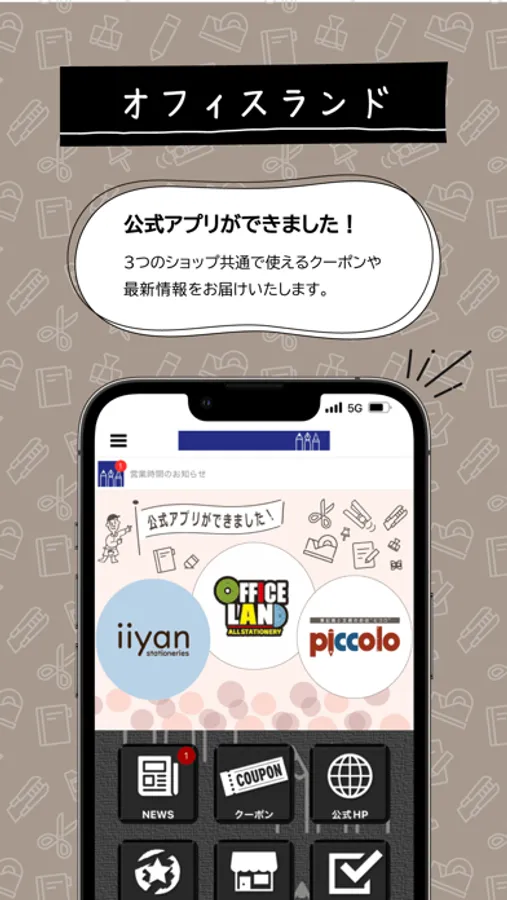 文具・事務用品店舗「オフィスランド」「いいやんステーショナリーズ」「ピコロ」を展開する「オフィスランド」の公式アプリです。